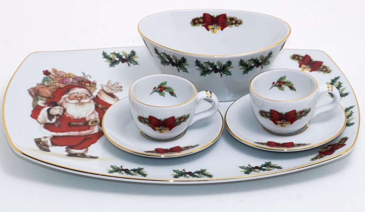 ESPRESSO FOR TWO WITH SUGAR BOWL AND RECTANGULAR PLATE. SANTA ON TOUR.