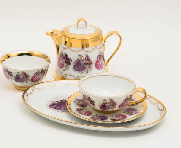 TEA SET WITH TEA CUP AND SAUCER, SUGAR BOWL AND OVAL PLATE